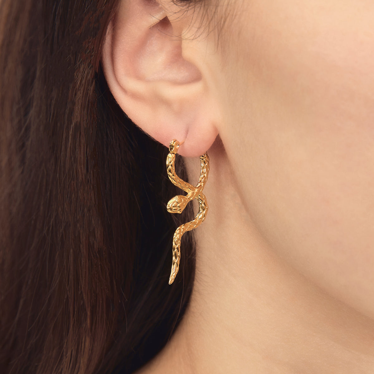 Crafted from gold-plated stainless steel, these earrings are not only elegant and durable, but also rich in historical symbolism. The snake design reflects the ancient reverence for serpents as sacred, regenerative creatures—associated with life, transformation, and mystical insight.