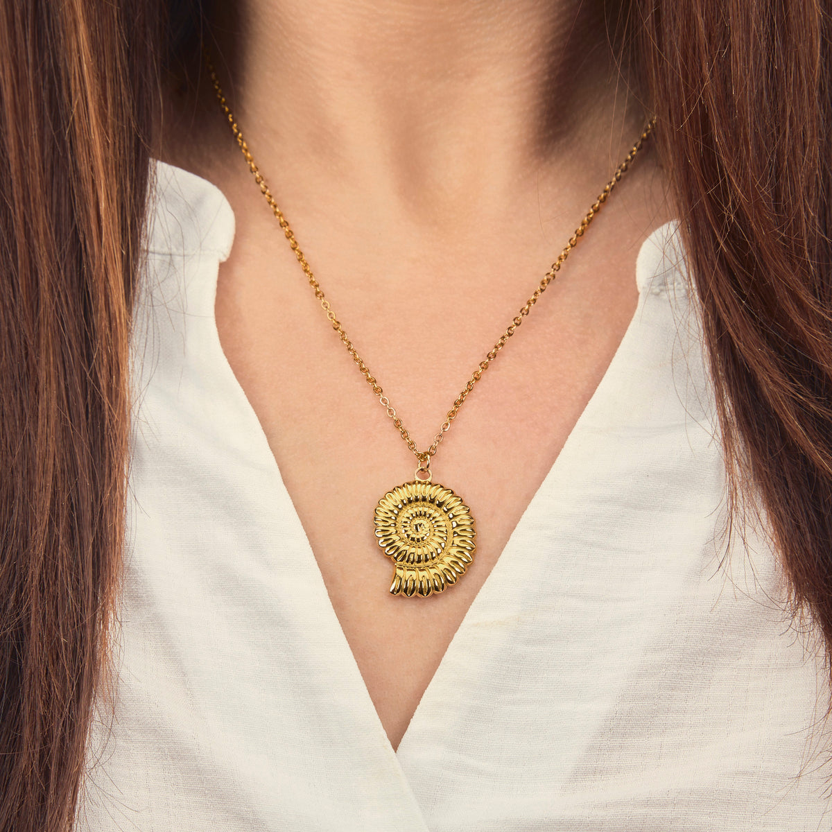 Gold plated ammonite pendant - Ammonites were a group of marine mollusks that lived in the world's oceans for approximately 140 million years, from the Devonian period (around 400 million years ago) to the end of the Cretaceous period (around 66 million years ago).